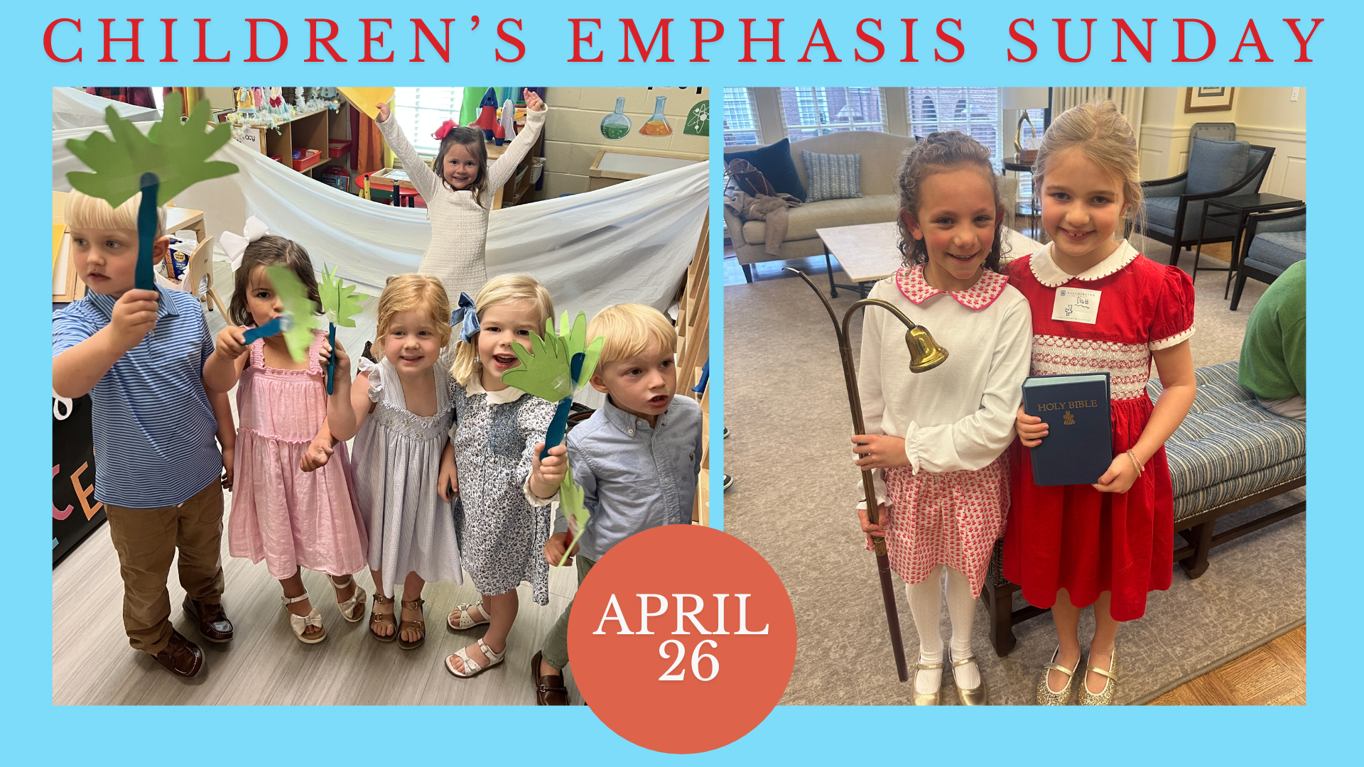 Children’s Emphasis Sunday is April 26th.