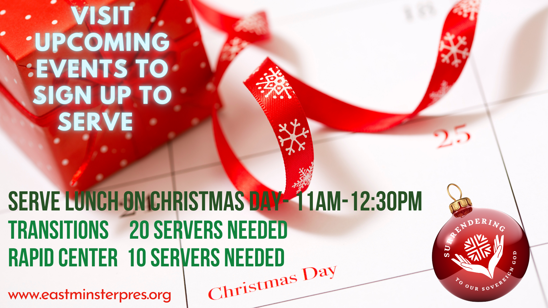 Join us on Christmas Day at Transitions, where we will be serving lunch and fellowshipping with our friends.