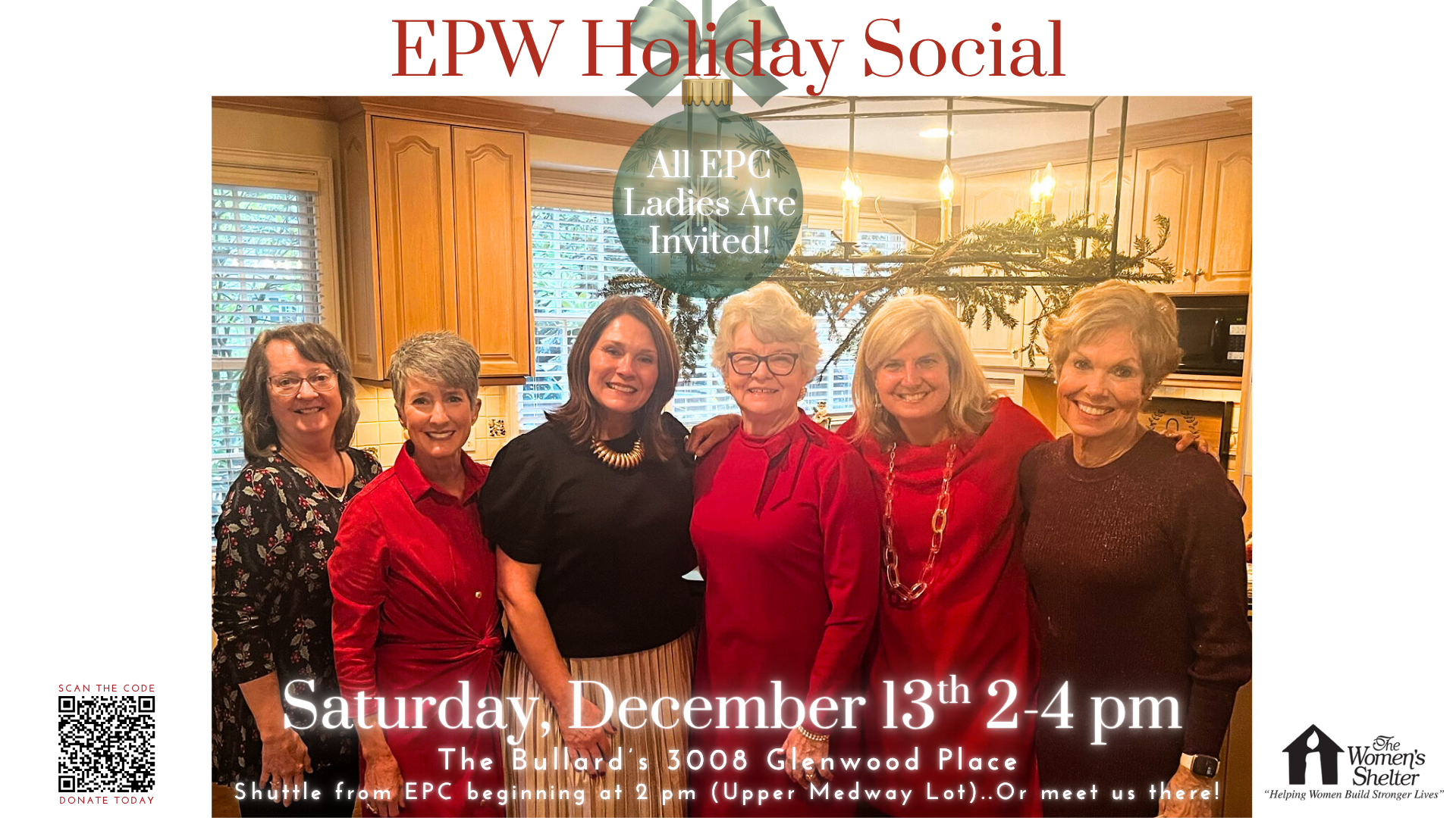 Spread Christmas Cheer by donating to EPC for the Columbia Women’s Shelter when you RSVP at the REGISTER button below.  Please RSVP by Thursday, December 11.