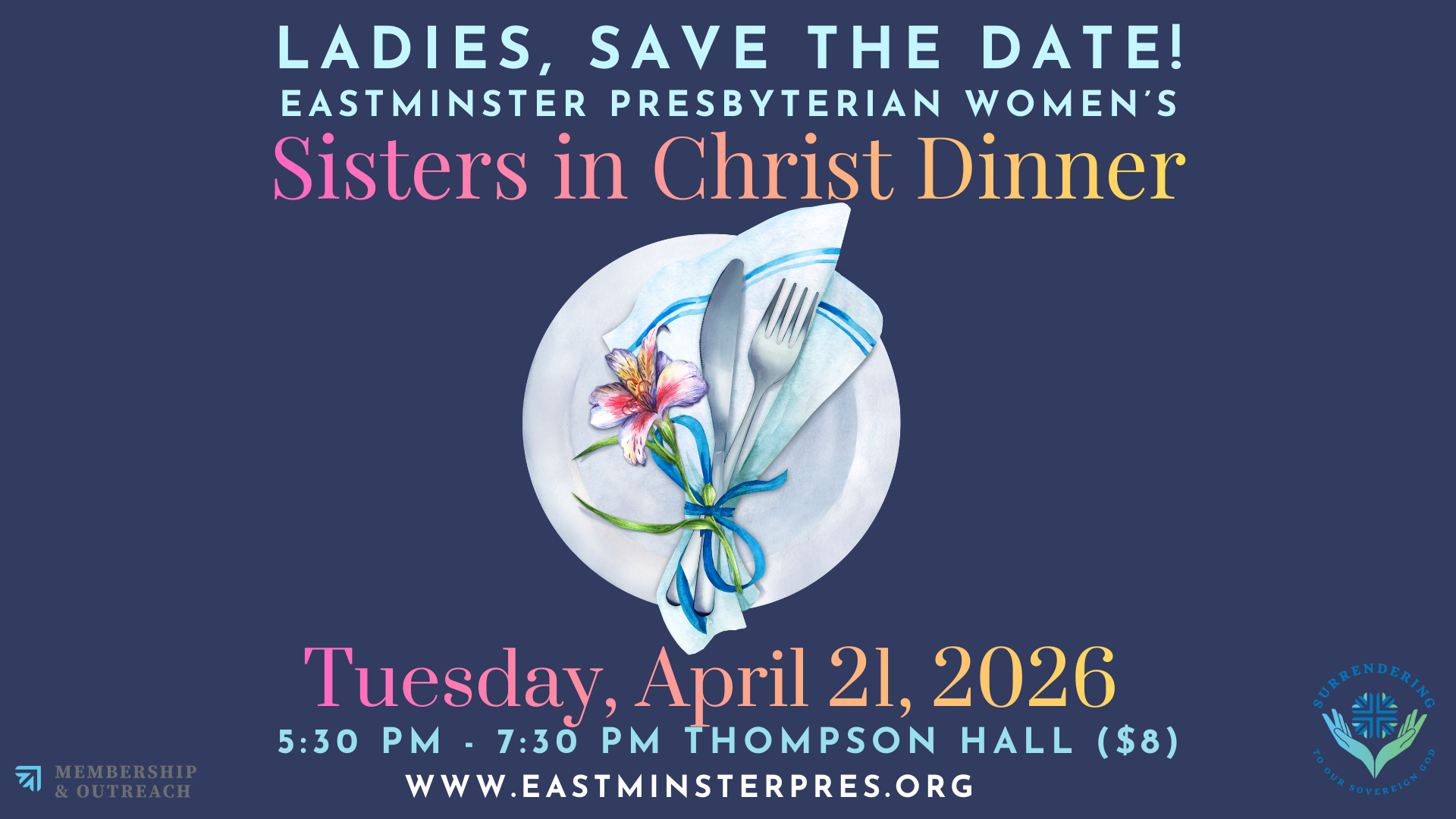 All Eastminster Ladies are invited to EPW’s Annual Sisters in Christ Dinner and Celebration!