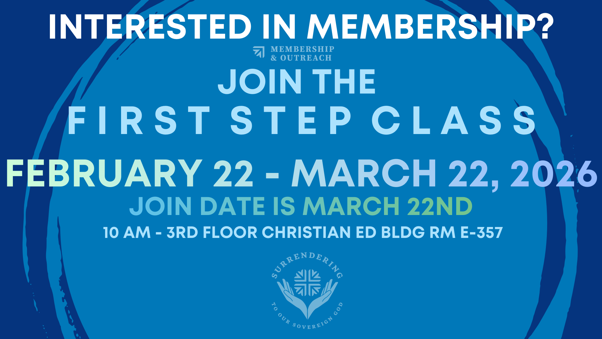 Are you interested in learning more about the church? We invite first-time guests to learn more about what it means to be engaged in the life of Eastminster by attending our First Step Class. The First Step Class is a class for those who are interested in membership and learning more about the church. Classes are led by our ministers and staff, where they discuss who we are, our ministries, ways to get involved, and all Eastminster has to offer. At the end of First Step, those who are interested in membership will have an opportunity to meet with the Session and join the church. If you would like to talk to someone about The First Step Class, email Katie Barthel with Membership & Outreach Ministries. You may also register for the Spring class below.