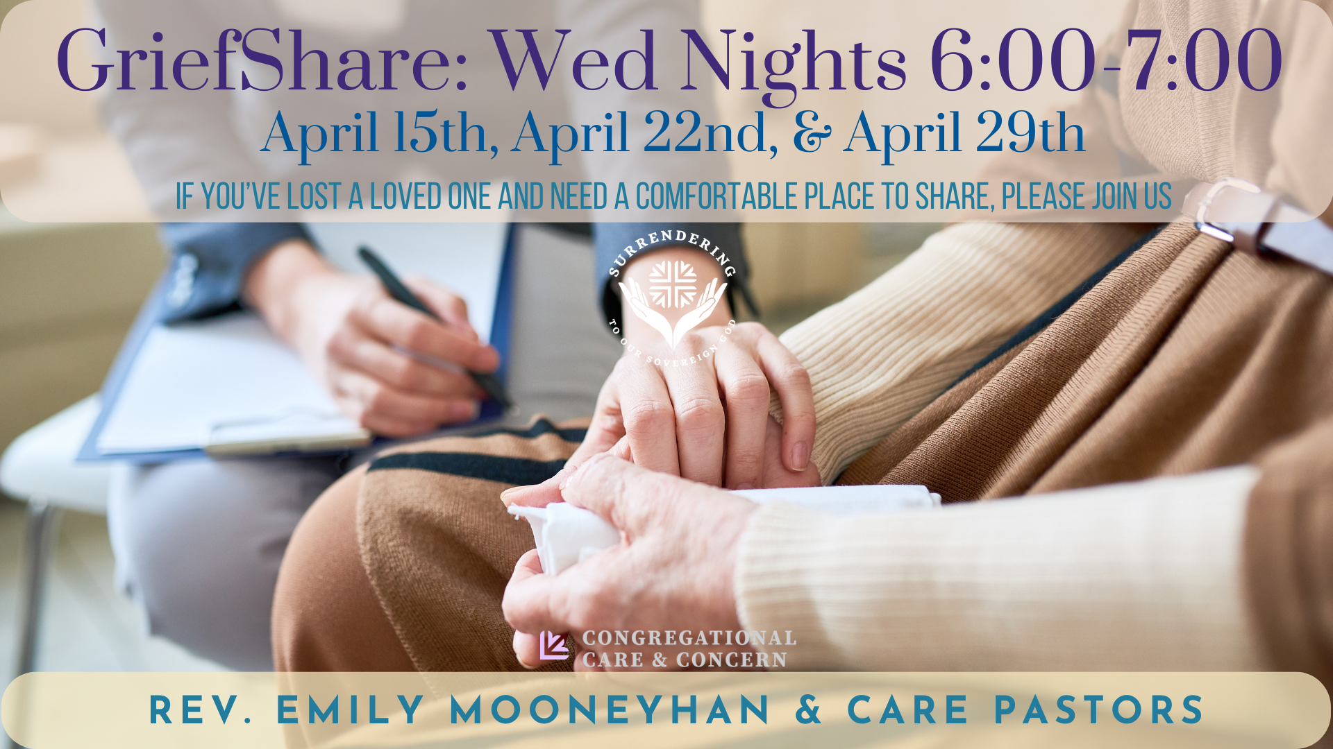 Pastors Emily & Carol will be leading our three GriefShare sessions.