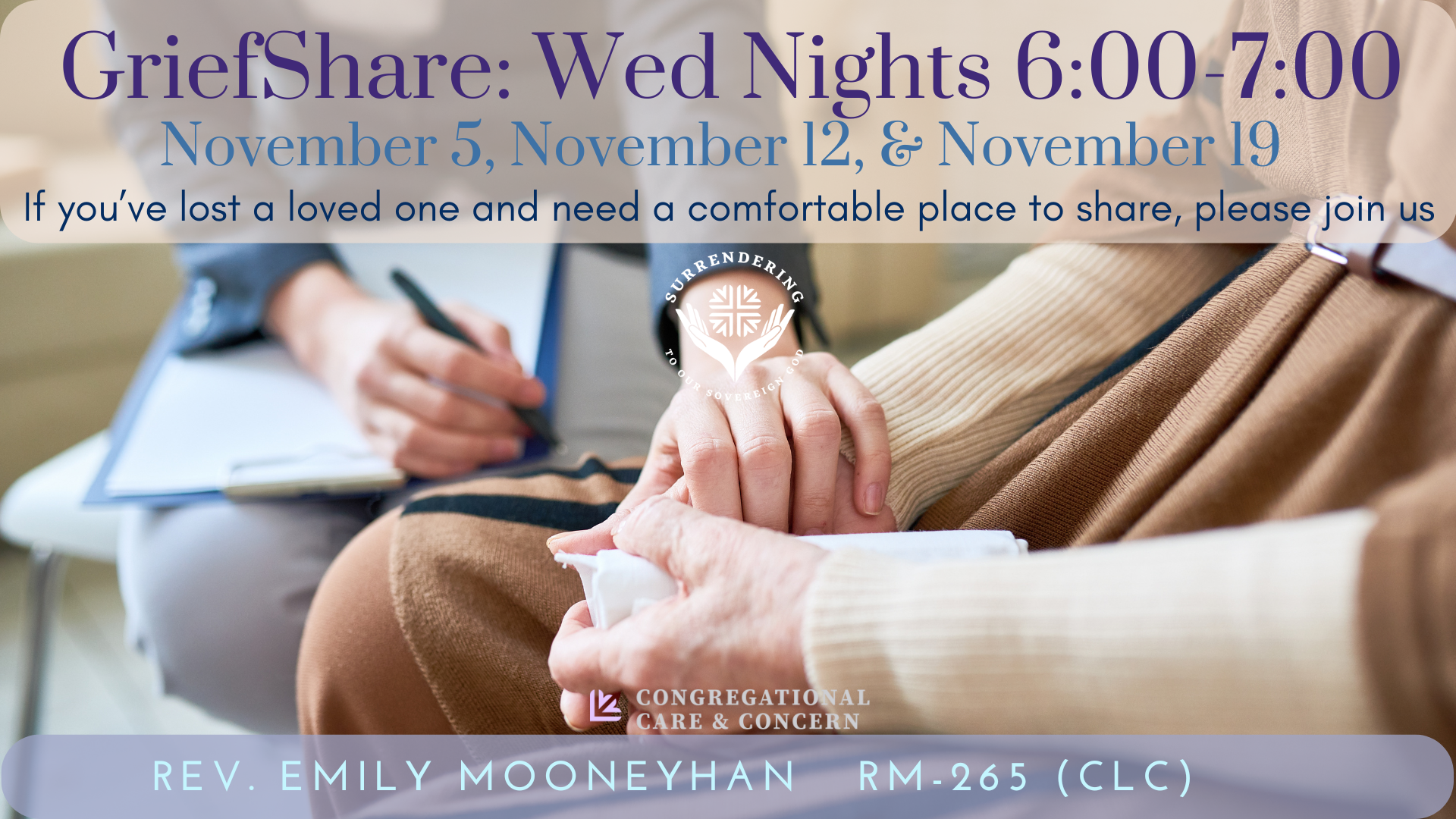 If you or a loved one are navigating the steep slope of grief due to the loss of a loved one, you should join us for three Wednesday nights in November.